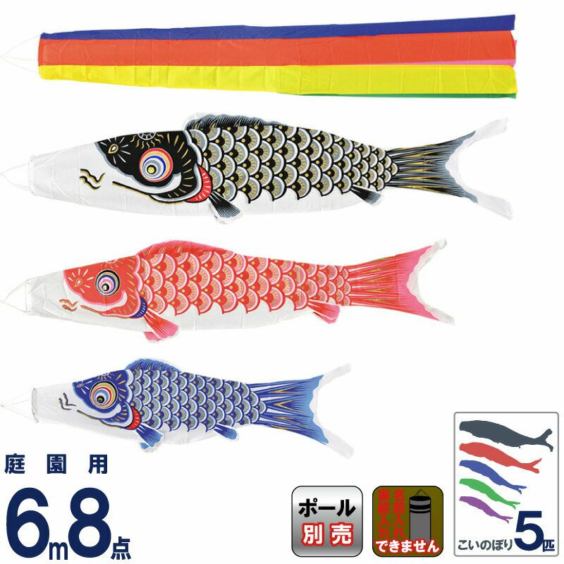 セット内容:黒鯉6m 赤鯉5m 青鯉4m 緑鯉3m 紫鯉2m 吹流し6m 矢車 ロープ