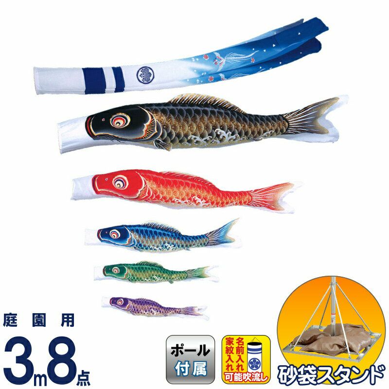 他の画像を見る 【送料無料】最安値に挑戦!2026年度新作 鯉のぼり こいのぼり 旭天竜 鯉のぼり 庭園用 3m8点 砂袋スタンドセット 翔勇 撥水加工 家紋・名前入れ可能 【2026年度新作】 m-shouyu-st-3m-8 メーカー希望小売価格 ¥ 277,900 (税込) ¥ 152,190 税込 カートに入れる お気に入りに登録する