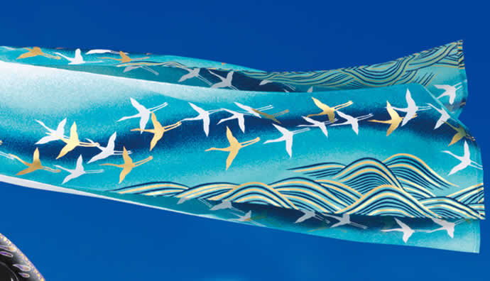 正絹の風合いを持つ流水柄のポリエステルジャガード織を使用した、最高級こいのぼりです。