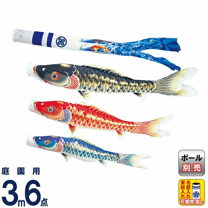 【送料無料】最安値に挑戦!2026年度新作 鯉のぼり こいのぼり ワタナベ 鯉のぼり 庭園用 3m 6点セット 天華 ポリエステル 撥水 家紋・名前入れ可 【2026年度新作】 wtk-tk00033
