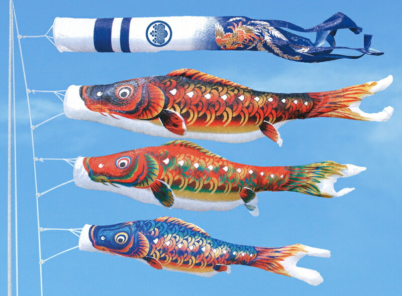 ・商品サイズにより目の描き方、ウロコの形状、ヒレの有無など、細かい仕様が変わります。こいのぼりの細かいほつれや、色むら、樹脂のメッキはげ(矢車の十字部分)等の、生産工程上生じるものは仕様であり不具合ではございませんので、予めご了承の上ご注文ください。