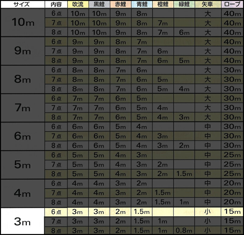 セット内容:吹流3m 黒鯉3m 赤鯉2m 青鯉1.5m 矢車 ロープ15m