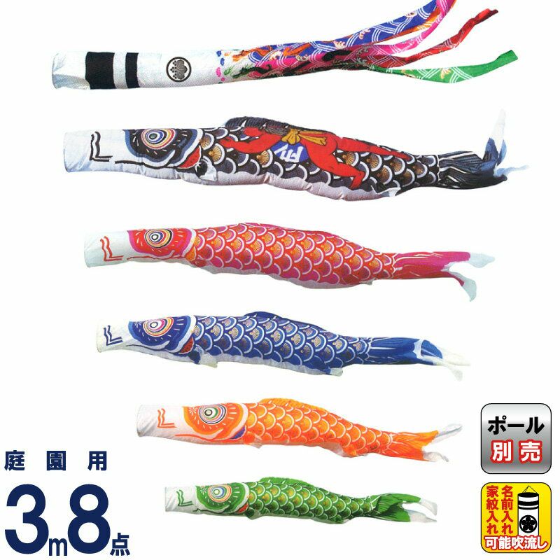 セット内容:吹流3m 黒鯉3m 赤鯉2m 青鯉1.5m 橙鯉1m 緑鯉0.8m 矢車 ロープ15m