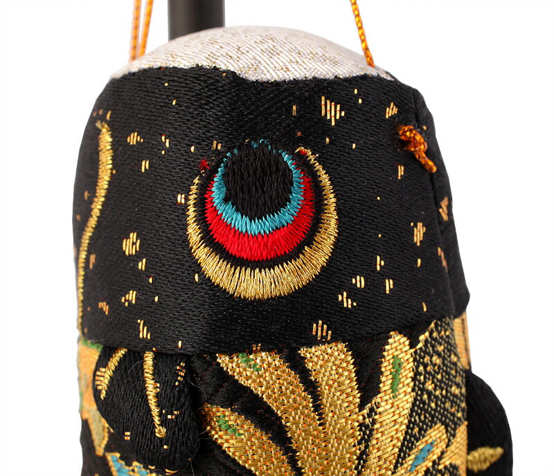 金糸で伝統文様を織り出した金襴生地を使用し、目は刺繍で仕上げています。