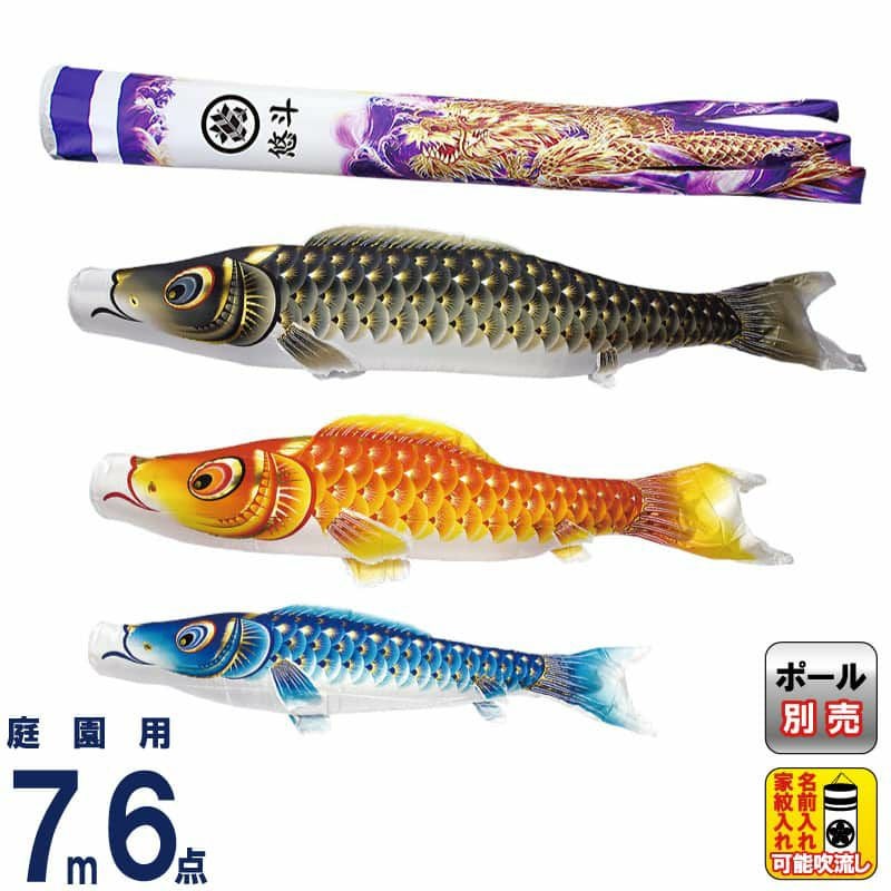 【送料無料】最安値に挑戦!2026年度新作 鯉のぼり こいのぼり 村上鯉 鯉のぼり 庭園用 7m 6点セット 金彩ロマン 紫龍吹流し 撥水 家紋・名入れ可 【2026年度新作】 mk-109-429