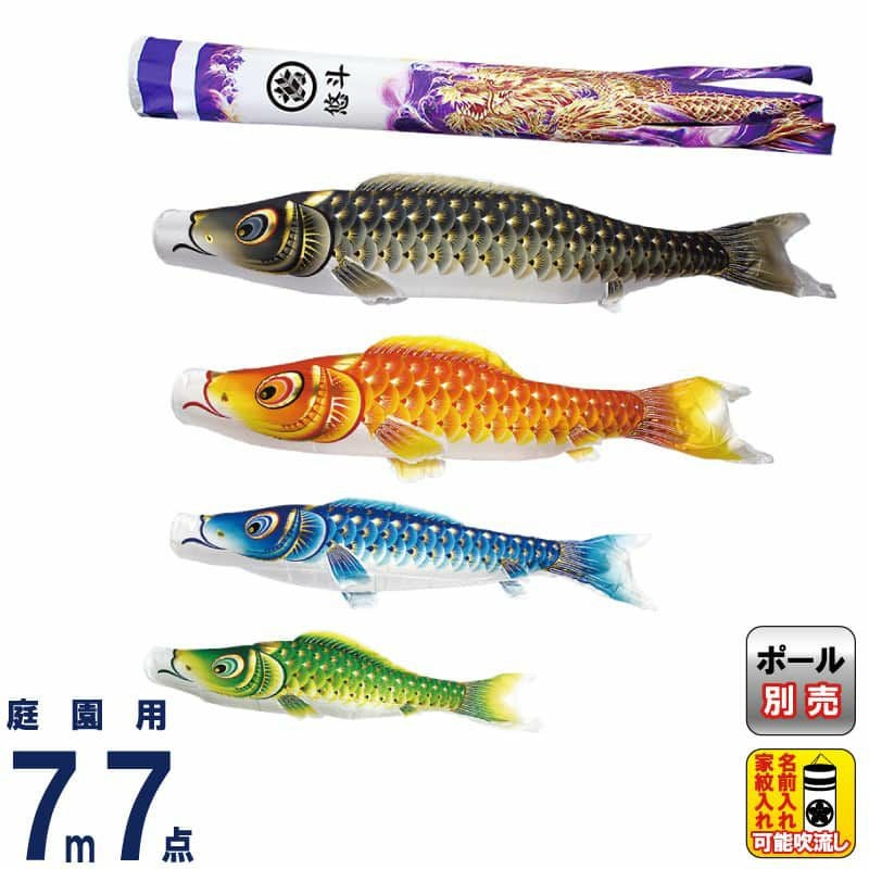 【送料無料】最安値に挑戦!2026年度新作 鯉のぼり こいのぼり 村上鯉 鯉のぼり 庭園用 7m 7点セット 金彩ロマン 紫龍吹流し 撥水 家紋・名入れ可 【2026年度新作】 mk-109-436