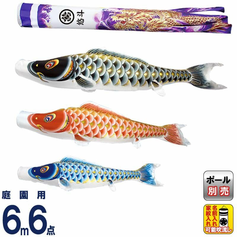 【送料無料】最安値に挑戦!2026年度新作 鯉のぼり こいのぼり 村上鯉 鯉のぼり 庭園用 6m 6点セット 大空悠々 紫龍吹流し 撥水 家紋・名入れ可 【2026年度新作】 mk-109-450