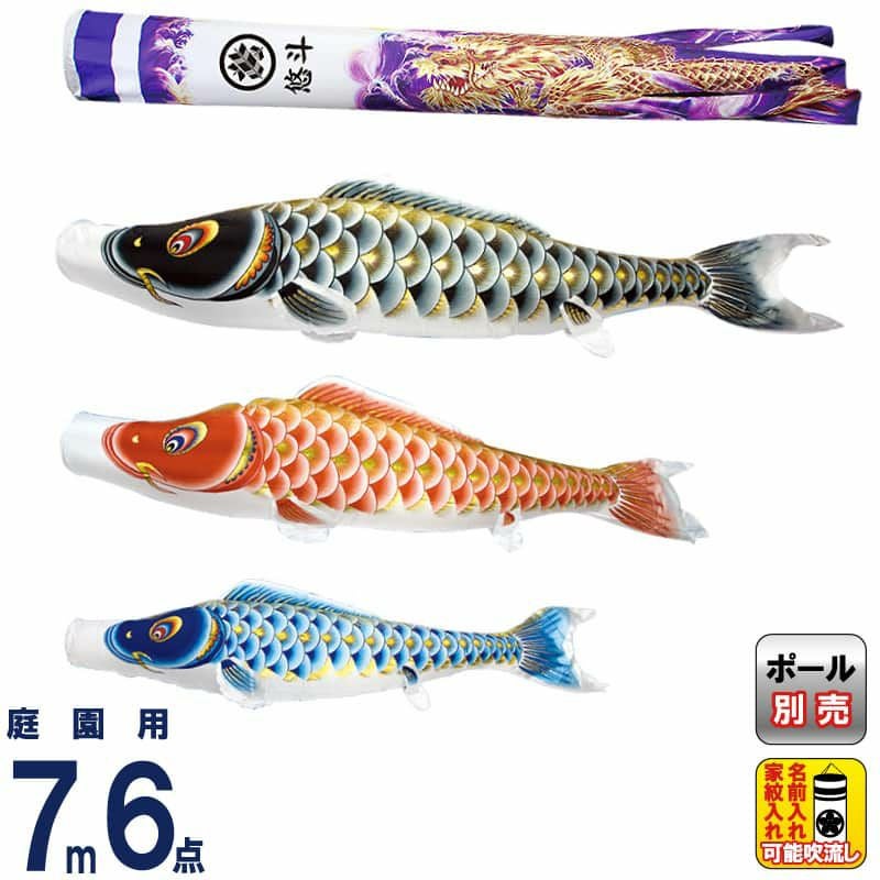 【送料無料】最安値に挑戦!2026年度新作 鯉のぼり こいのぼり 村上鯉 鯉のぼり 庭園用 7m 6点セット 大空悠々 紫龍吹流し 撥水 家紋・名入れ可 【2026年度新作】 mk-109-474
