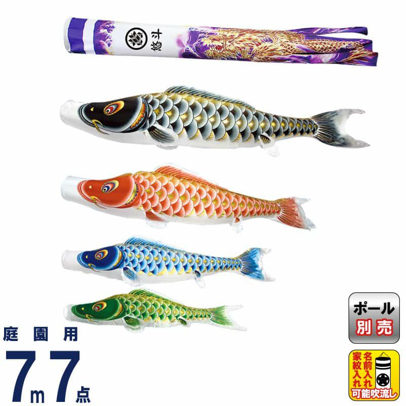 【送料無料】最安値に挑戦!2026年度新作 鯉のぼり こいのぼり 村上鯉 鯉のぼり 庭園用 7m 7点セット 大空悠々 紫龍吹流し 撥水 家紋・名入れ可 【2026年度新作】 mk-111-354