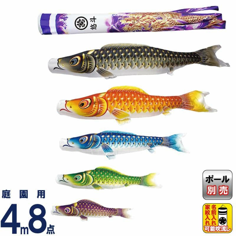 【送料無料】最安値に挑戦!2026年度新作 鯉のぼり こいのぼり 村上鯉 鯉のぼり 庭園用 4m 8点セット 金彩ロマン 紫龍吹流し 撥水 家紋・名入れ可 【2026年度新作】 mk-146-707