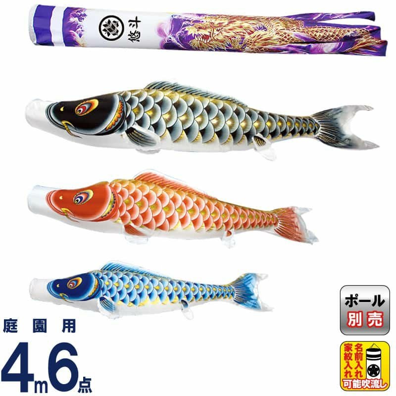 【送料無料】最安値に挑戦!2024年度新作 鯉のぼり こいのぼり 村上鯉 鯉のぼり 庭園用 4m 6点セット 大空悠々 紫龍吹流し 撥水 家紋・名入れ可 【2024年度新作】 mk-146-769