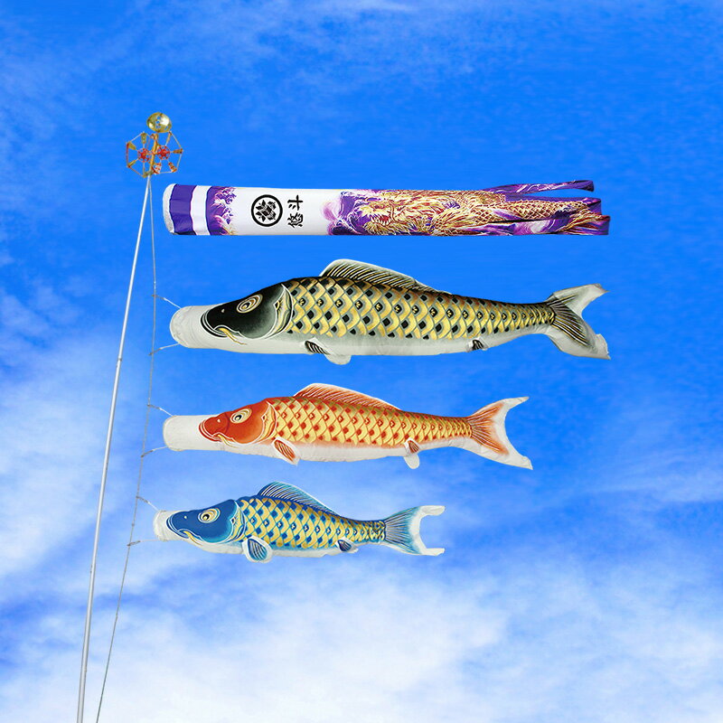 ・商品サイズにより目の描き方、ウロコの形状、ヒレの有無など、細かい仕様が変わります。こいのぼりの細かいほつれや、色むら、樹脂のメッキはげ(矢車の十字部分)等の、生産工程上生じるものは仕様であり不具合ではございませんので、予めご了承の上ご注文ください。