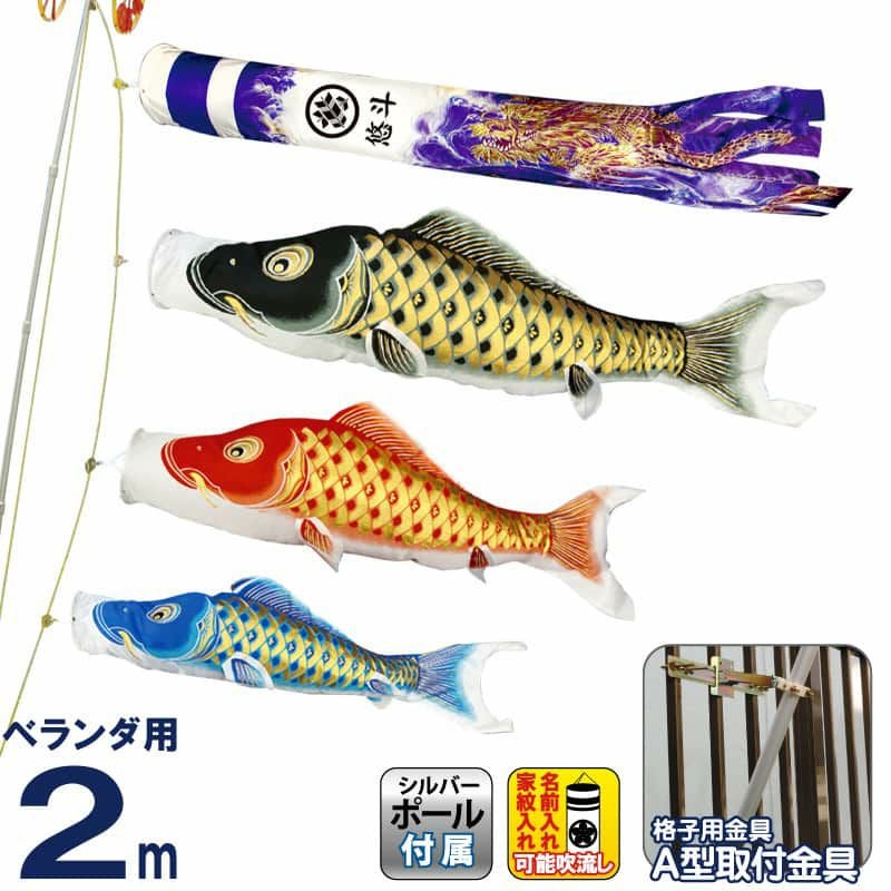 【送料無料】最安値に挑戦!2024年度新作 鯉のぼり こいのぼり 村上鯉 鯉のぼり ベランダ用 スタンダードホームセット 2m 黄金輝 紫龍吹流し 撥水 家紋・名入れ可 【2024年度新作】 mk-651-720