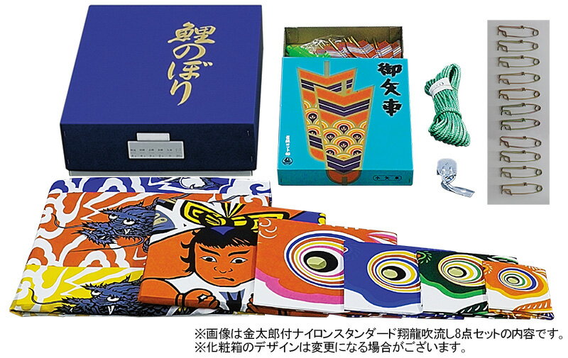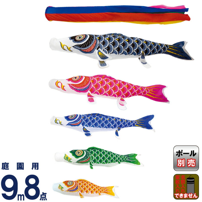 セット内容:吹流し9m 黒鯉9m 赤鯉8m 青鯉7m 緑鯉6m 橙鯉5m 矢車(特大) ロープ35m