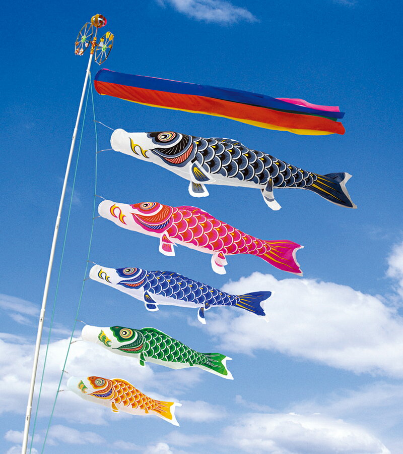 ・商品サイズにより目の描き方、ウロコの形状、ヒレの有無など、細かい仕様が変わります。こいのぼりの細かいほつれや、色むら、樹脂のメッキはげ(矢車の十字部分)等の、生産工程上生じるものは仕様であり不具合ではございませんので、予めご了承の上ご注文ください。