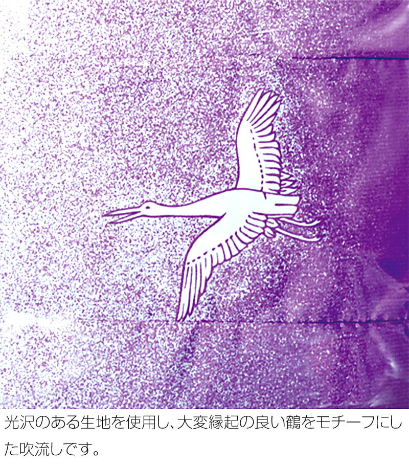 吹流しはポリエステルシルキーブライト生地を使用し、縁起の良い鶴を描いた「千羽鶴吹流し」をセットしています。