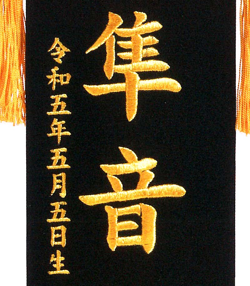 お名前と生年月日を豪華な金糸刺繍でお入れします。