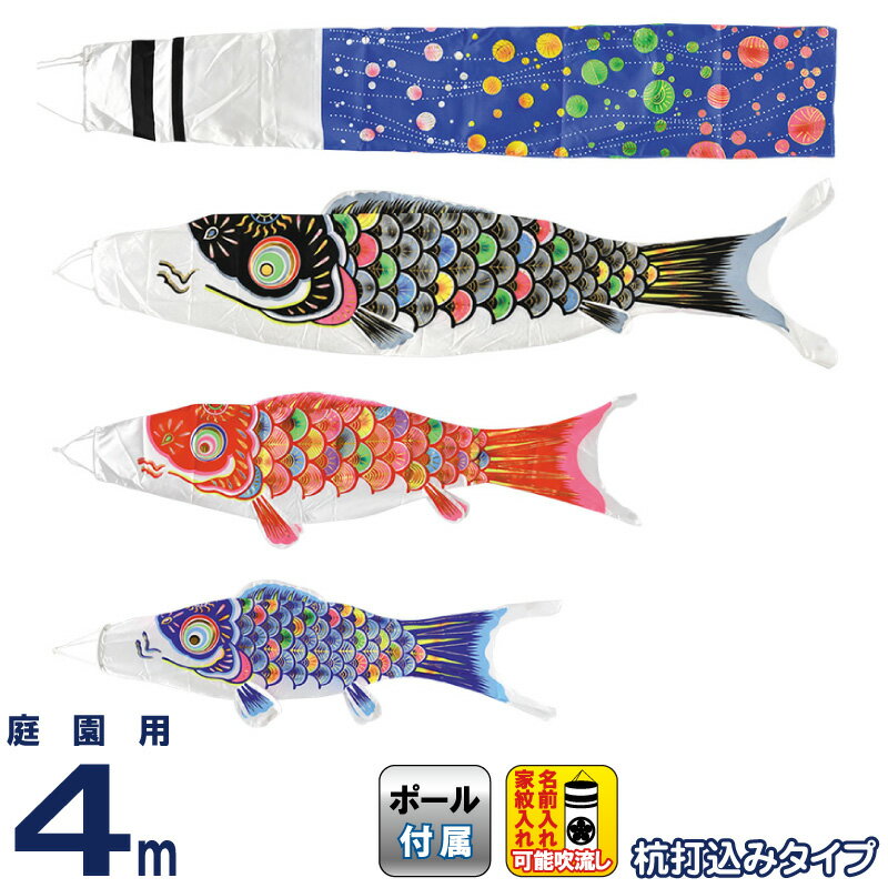 【送料無料】最安値に挑戦!2025年度新作 鯉のぼり こいのぼり フジサン鯉 鯉のぼり 庭園用 40号 4m マイホームセット 杭打込タイプ メルヘン鯉 ポリエステルスエード地 家紋・名前入れ可能 【2025年度新作】 kb5-meru-4m-mhk