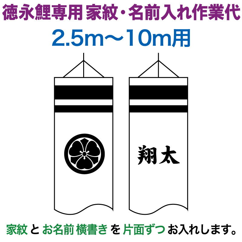 【送料無料】最安値に挑戦!2026年度新作 鯉のぼり こいのぼり 徳永鯉 鯉のぼり 10m~2.5m用 家紋1種(片面) 名前1種(片面) 横書き 徳永鯉専用 家紋・名前入れ作業代 【2026年度新作】 toku-kamon-f7