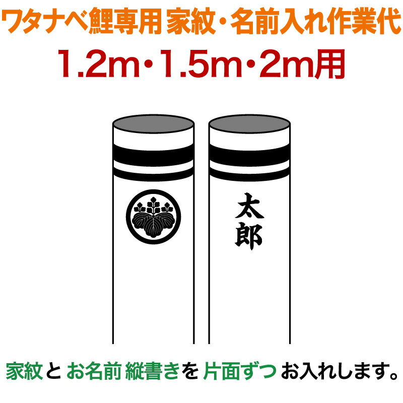 【送料無料】最安値に挑戦!2026年度新作 鯉のぼり こいのぼり ワタナベ 鯉のぼり 2m~1.2m用 家紋1種 名前縦書き(片面ずつ) 家紋・名前入れ作業代 ワタナベ鯉専用 【2026年度新作】 wtk-kamon-2-kna