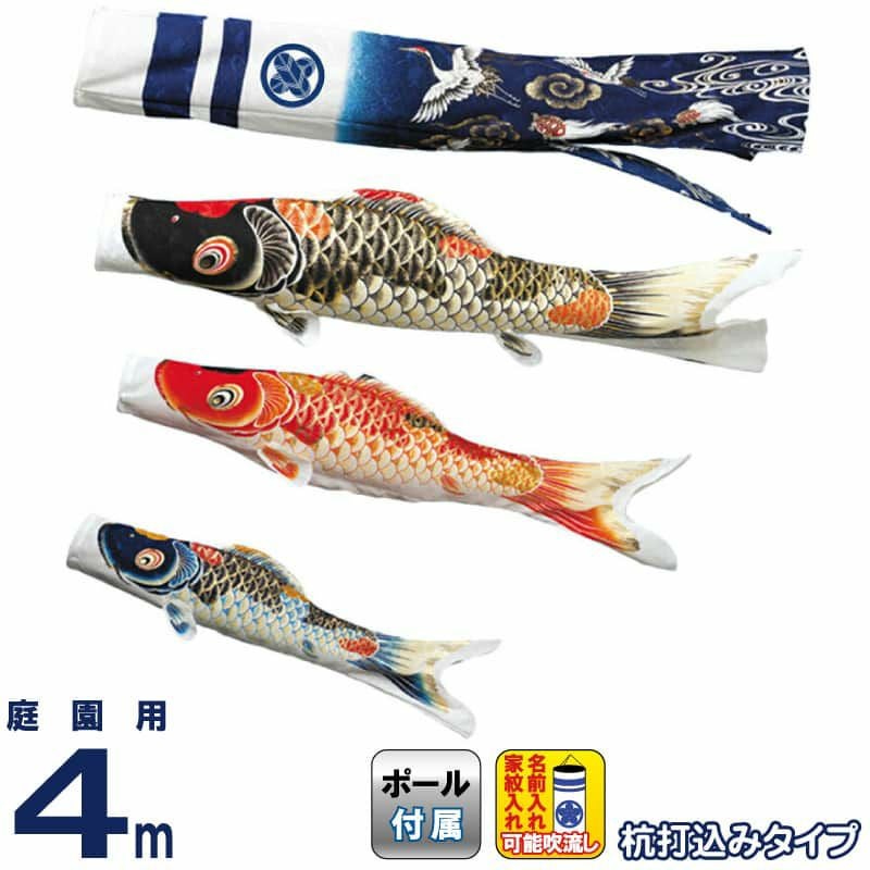 【送料無料】最安値に挑戦!2026年度新作 鯉のぼり こいのぼり ワタナベ 鯉のぼり 庭園用 4m 杭打込 吉祥天 ポリエステル 撥水 家紋・名前入れ可 【2026年度新作】 wtk-mhkt040