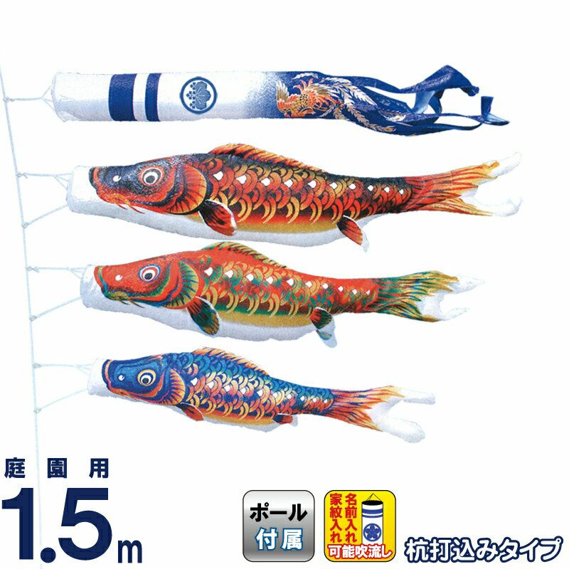 【送料無料】最安値に挑戦!2026年度新作 鯉のぼり こいのぼり キング印 鯉のぼり 庭園用 1.5m 庭園セット にじいろ ポリエステル 撥水加工 杭打込フルセット 家紋・名前入れ可能 【2026年度新作】 ym-2012015
