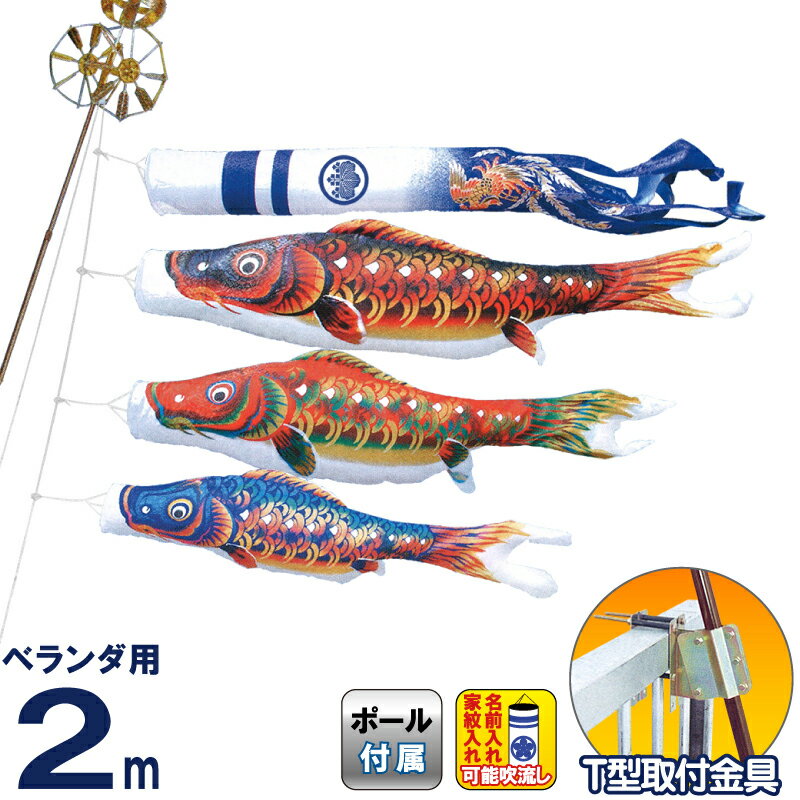 【送料無料】最安値に挑戦!2026年度新作 鯉のぼり こいのぼり キング印 鯉のぼり ベランダ用 2m ホームセット にじいろ ポリエステル 撥水 T型金具フルセット 家紋・名前入れ可能 【2026年度新作】 ym-2013020