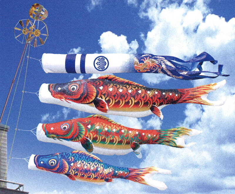 ・商品サイズにより目の描き方、ウロコの形状、ヒレの有無など、細かい仕様が変わります。こいのぼりの細かいほつれや、色むら、樹脂のメッキはげ(矢車の十字部分)等の、生産工程上生じるものは仕様であり不具合ではございませんので、予めご了承の上ご注文ください。