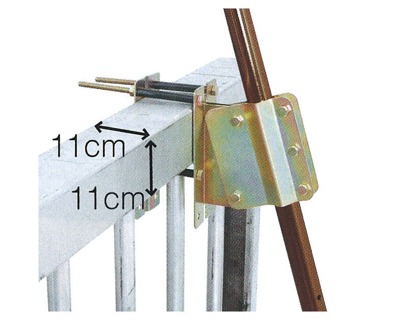T型取付金具は一辺が11cmまでの角型手すりを挟み込み設置するタイプです。