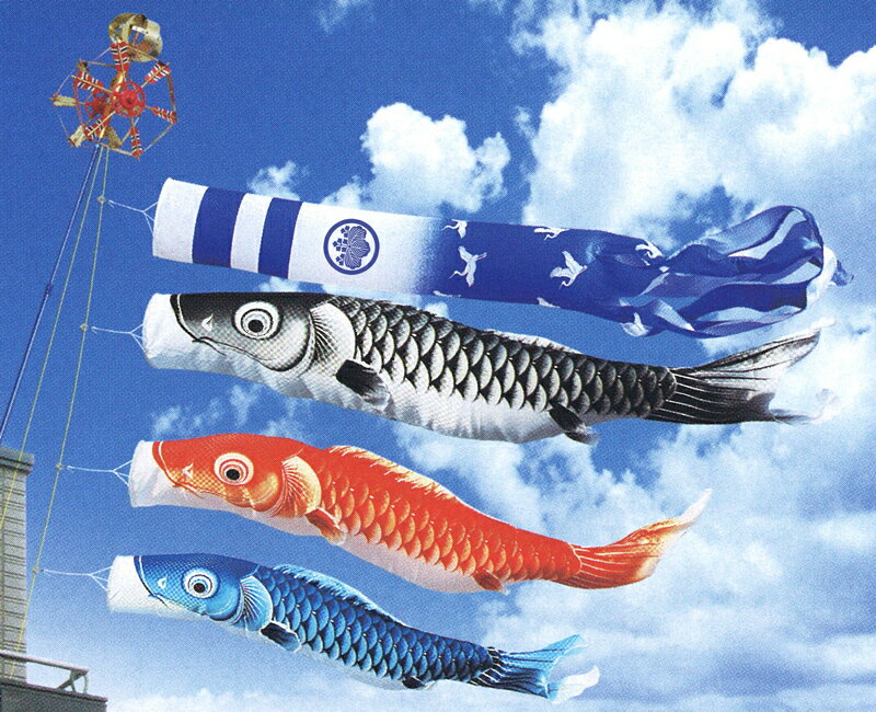 吹流しは青地におめでたい鶴を配した、お子様の出世を願う鯉のぼりです。