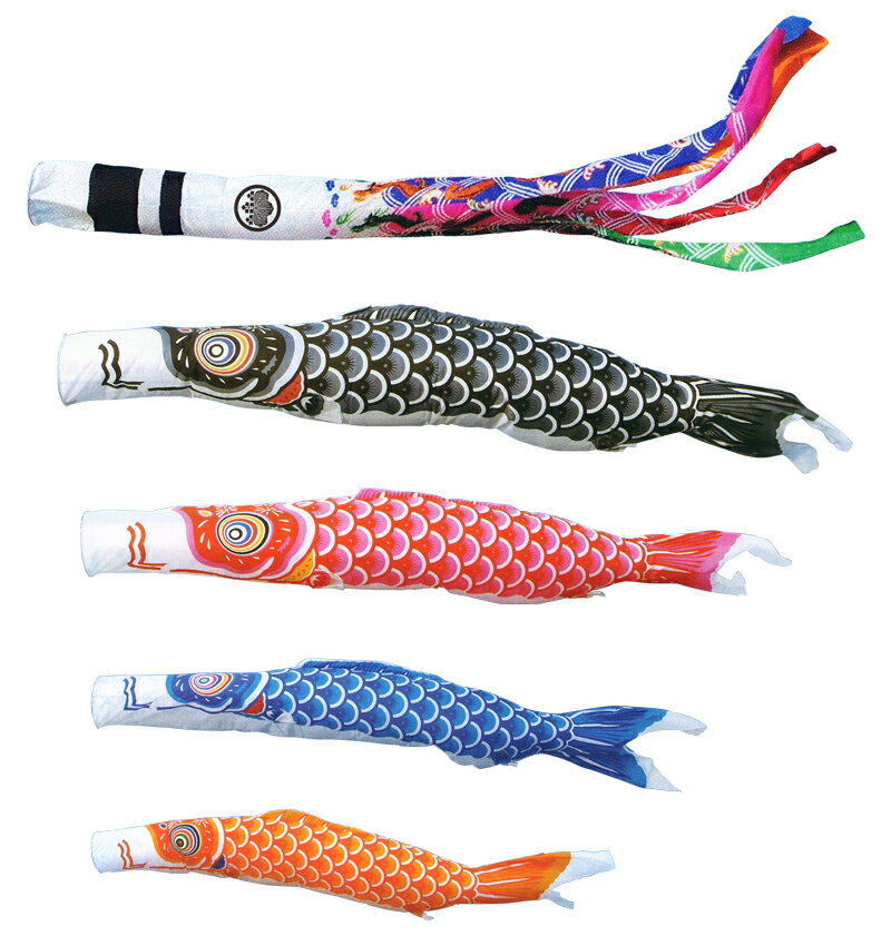 セット内容:吹流3m 黒鯉3m 赤鯉2m 青鯉1.5m 橙鯉1m 矢車 ロープ15m