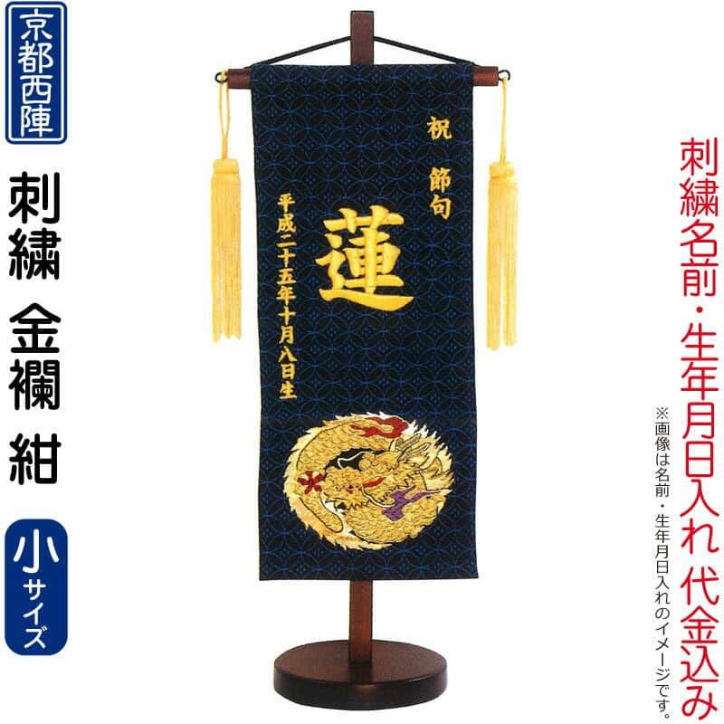 【送料無料】最安値に挑戦!2026年度新作 鯉のぼり 五月人形 キング印 名前旗 男の子 金襴 紺(小)京都西陣織 刺繍 名前 生年月日入れ代金込み スタンド付 【2026年度新作】 ym-51322