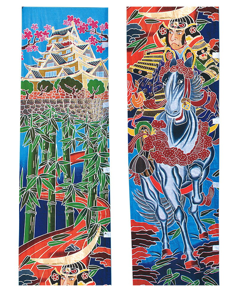 綿100%の生地に、一枚一枚伝統の友禅染技法を駆使しているため、日光や雨にも強く色落ちしない手作り幟の秀作です。