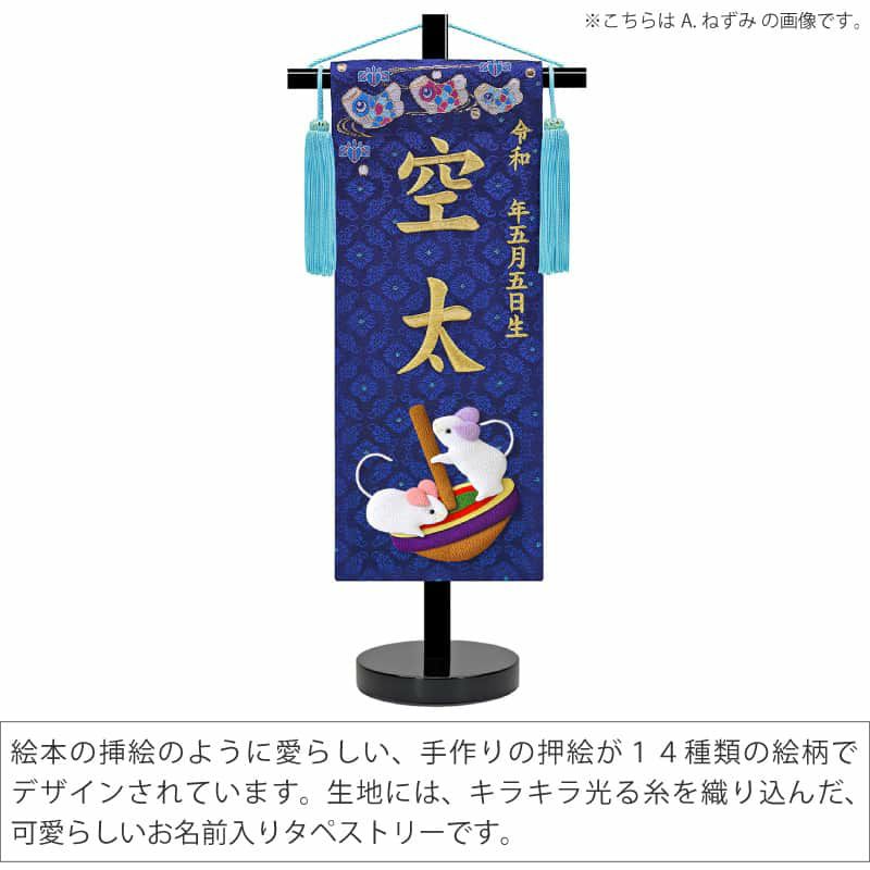 他の画像を見る 【送料無料】最安値に挑戦!2026年度新作 五月人形 五月人形 名前旗 男の子 慶祝 干支 紺(小)金刺繍 生年月日 名前入れ代金込み 縮緬 スタンド付 【選べる14種類】 5ad-eto-s-n ¥ 14,290 税込 販売期間 2026/01/01 0:00 〜 2026/04/28 7:59 カートに入れる お気に入りに登録する