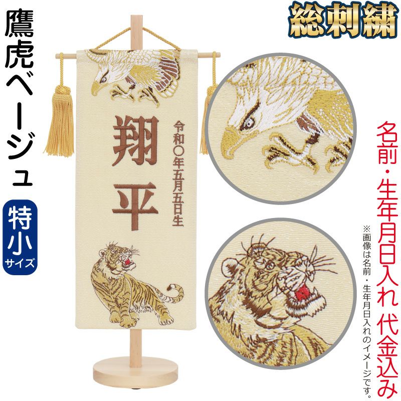 【送料無料】最安値に挑戦!2026年度新作 五月人形 五月人形 名前旗 男の子 鷹虎ベージュ(特小)ブロンズ刺繍 名前+生年月日入れ 代金込み スタンド付 【2026年度新作】 h085-fz-5620-35-134