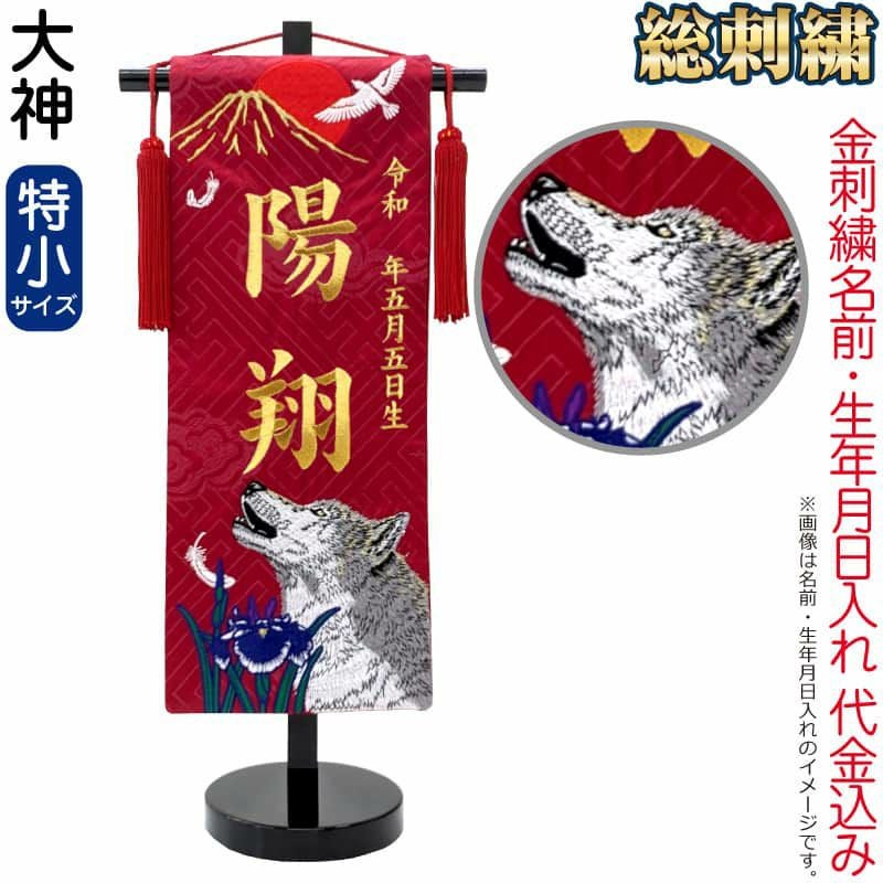 【送料無料】最安値に挑戦!2026年度新作 五月人形 五月人形 名前旗 男の子 総刺繍 大神(特小)金刺繍 生年月日 名前入れ代金込み スタンド付 【2026年度新作】 5ad-ookm-ts