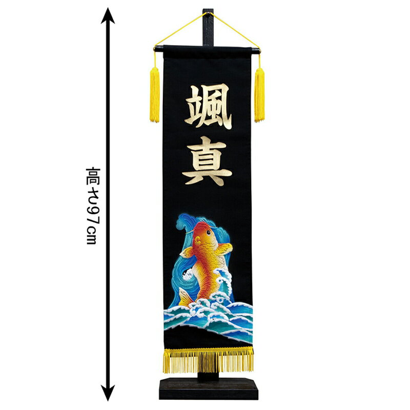 【送料無料】最安値に挑戦!2026年度新作 五月人形 五月人形 こいのぼり 名前旗 村上鯉 室内飾り 手描総盛上(大)鯉 黄房 スタンド付 金文字 名前入れ代込 【2026年度新作】 mk-name5-156-652