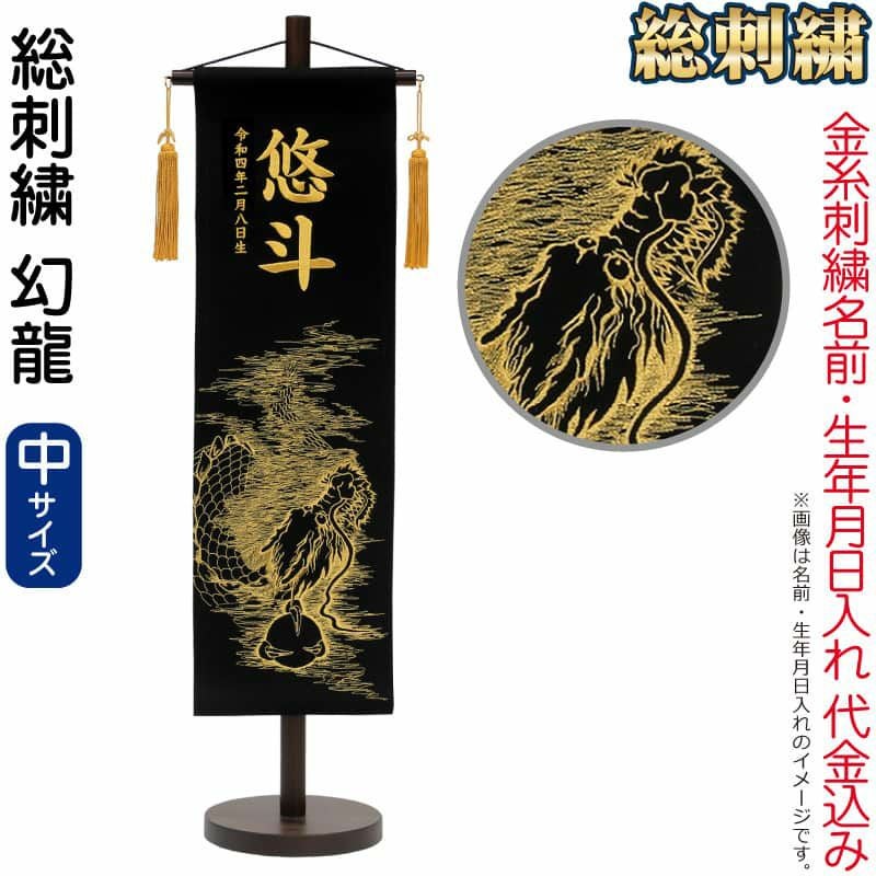 【送料無料】最安値に挑戦!2026年度新作 五月人形 五月人形 こいのぼり 名前旗 村上鯉 室内飾り 総刺繍(中)幻龍 金房 スタンド付 金糸刺繍 生年月日 名前入れ代込 【2026年度新作】 mk-name5-194-647
