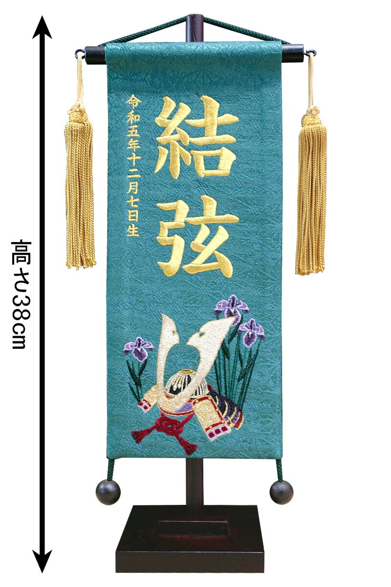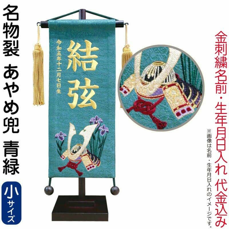 【送料無料】最安値に挑戦!2026年度新作 五月人形 五月人形 こいのぼり 名前旗 村上鯉 室内飾り 名物裂(小)あやめ兜 青緑 金房 スタンド付 金糸刺繍 生年月日 名前入れ代込 【2026年度新作】 mk-name5-202-977