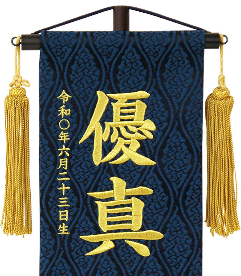 武士が縁起物として好んで着ていた日本伝統の色、藍色を基調とした総刺繍の名前旗です。