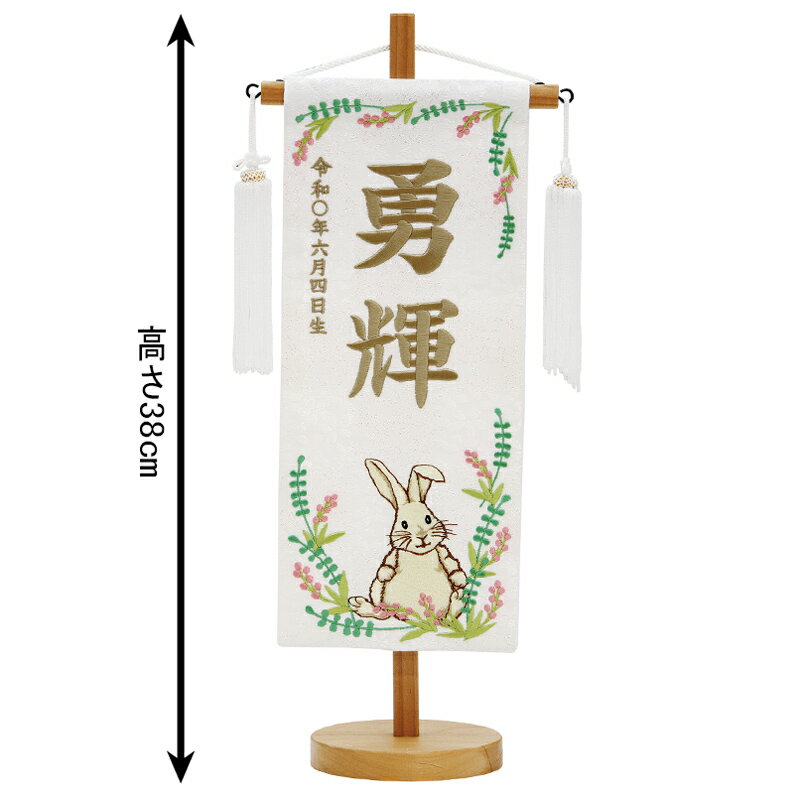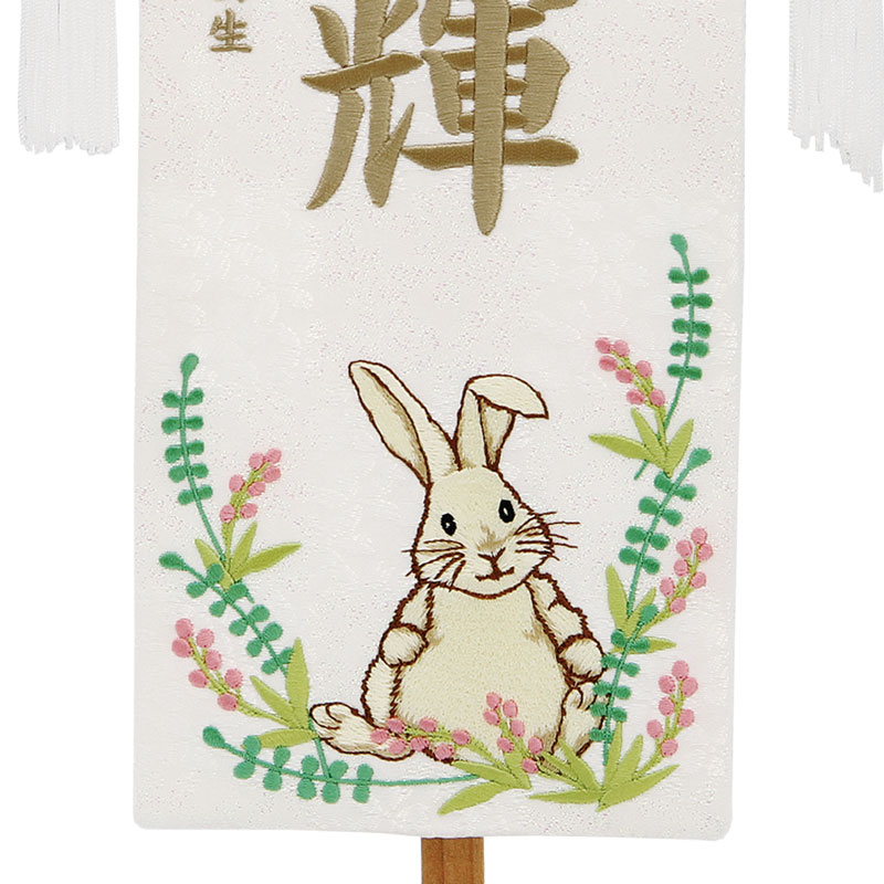 【送料無料】最安値に挑戦!2026年度新作 五月人形 五月人形 こいのぼり 名前旗 村上鯉 室内飾り 特織(小)若草にうさぎ 白 白房 スタンド付 薄茶糸刺繍 生年月日 名前入れ代込 【2026年度新作】 mk-name5-653-939
