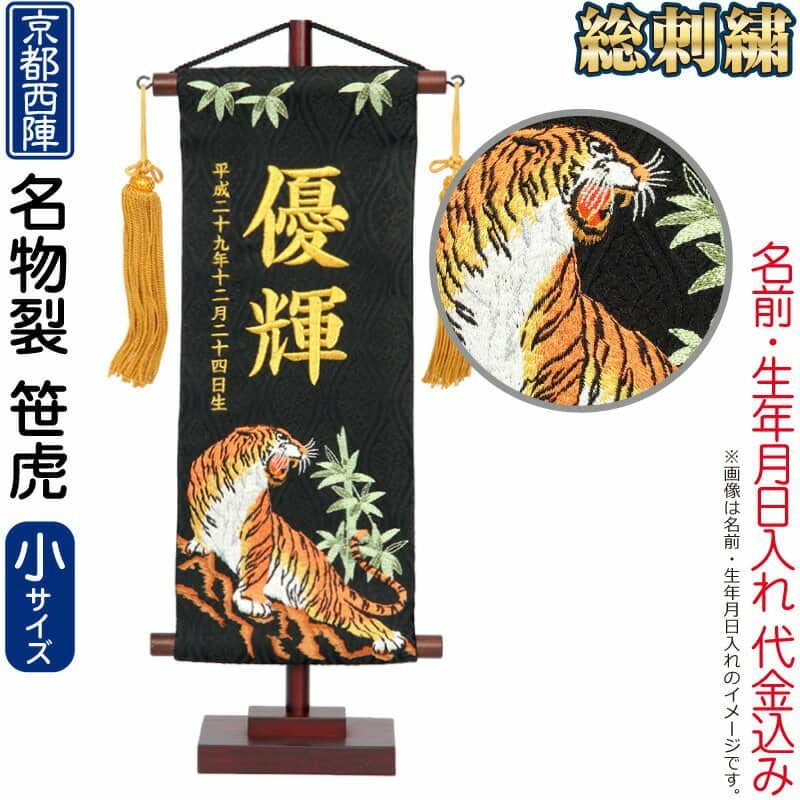 【送料無料】最安値に挑戦!2026年度新作 五月人形 名前旗 五月人形 平安義正作 名物裂 京都 西陣 織物 (黒) 刺繍柄笹虎 誕生日刺繍 小 飾り台付 名前・生年月日入れ代金込み 【2026年度新作】 h295-mkcp-173697