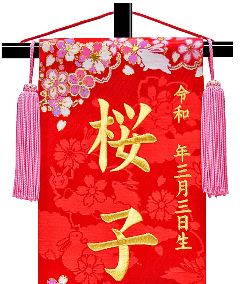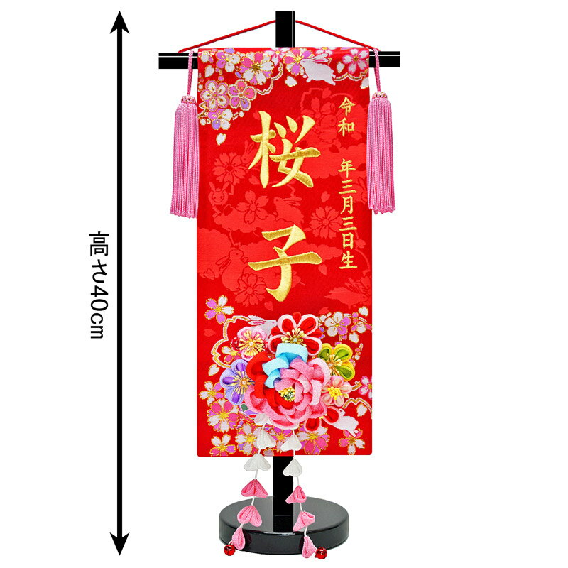 【送料無料】最安値に挑戦!2026年度新作 雛人形 雛人形 ひな人形 名前旗 女の子 鞠とうさぎ 赤(特小)ゴールド刺繍 生年月日 名前入代込 つまみかんざし付 黒塗スタンド付 【2026年度新作】 3ad-mariusa-r