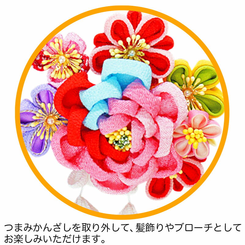立体的な花かんざしは、取り外すことができますので、髪飾りやブローチとしてもお使いいただけます。