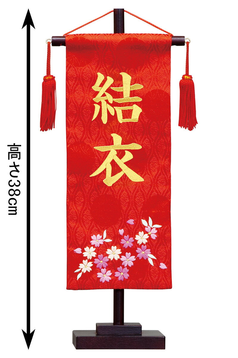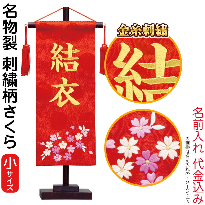 【送料無料】最安値に挑戦!2024年度新作 雛人形 名前旗 雛人形 村上鯉幟 室内飾り 名物裂 (小) 刺繍柄さくら 赤房 スタンド付 金糸刺繍 名前入れ代込み 【2024年度新作】 mk-name-3-156-454