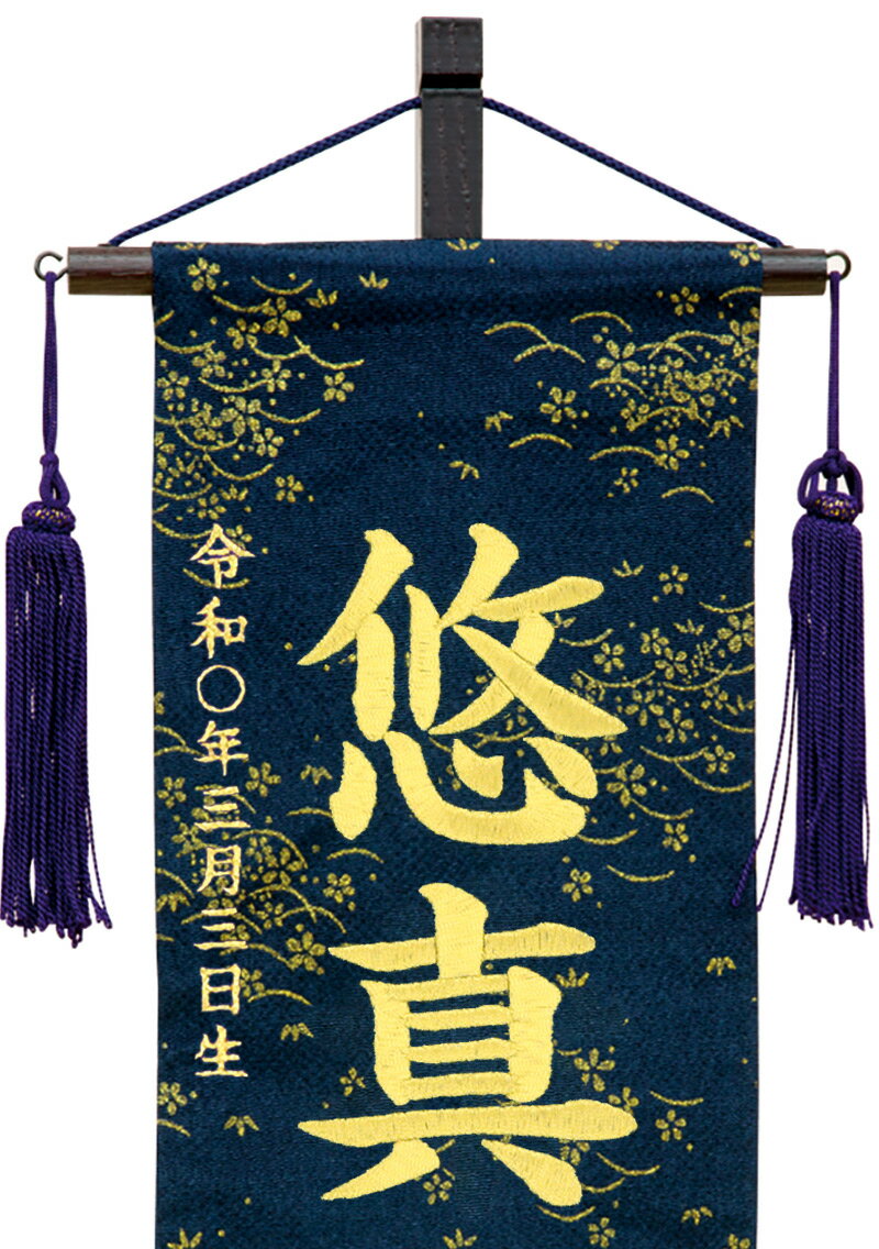 【送料無料】最安値に挑戦!2026年度新作 雛人形 名前旗 雛人形 五月人形 村上鯉幟 室内飾り 金彩ちりめん(特中)鳳凰 紺 紺房 スタンド付 金糸刺繍 生年月日 名前入れ代込み 【2026年度新作】 mk-name-3-159-288