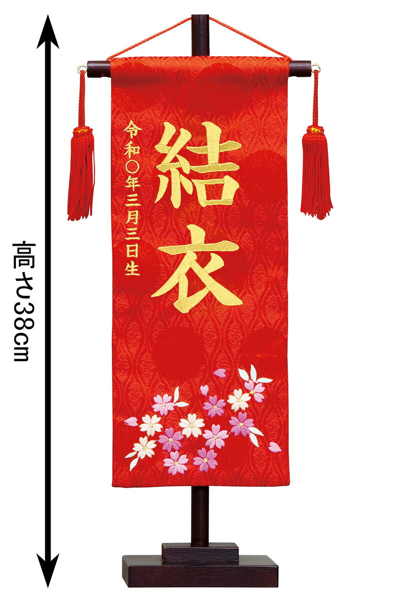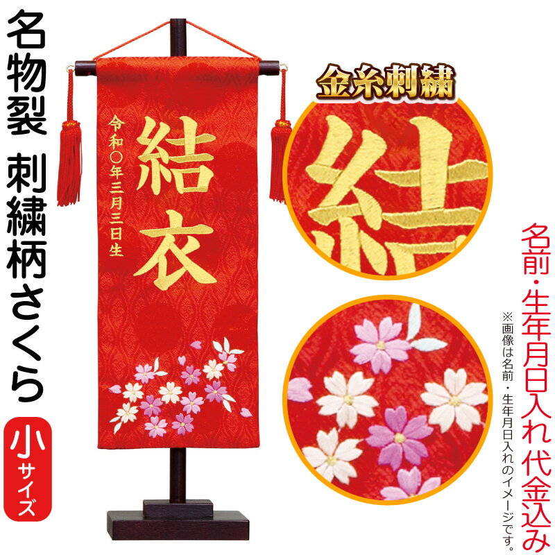 【送料無料】最安値に挑戦!2024年度新作 雛人形 名前旗 雛人形 村上鯉幟 室内飾り 名物裂 (小) 刺繍柄さくら 赤房 スタンド付 金糸刺繍 生年月日 名前入れ代込み 【2024年度新作】 mk-name-3-161-564