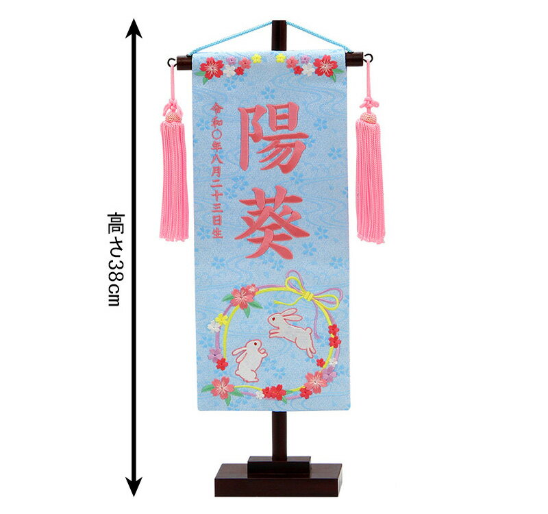 【送料無料】最安値に挑戦!2026年度新作 雛人形 名前旗 雛人形 村上鯉幟 室内飾り 特織(小)兎リース 水色 桃房 スタンド付 薄桃糸刺繍 生年月日 名前入れ代込み 【2026年度新作】 mk-name-3-650-907