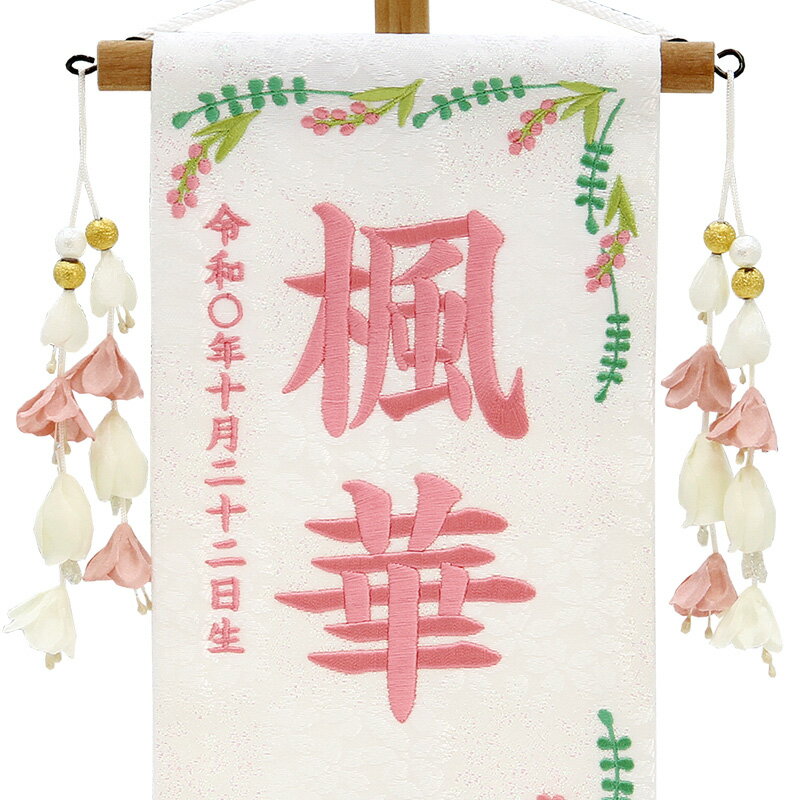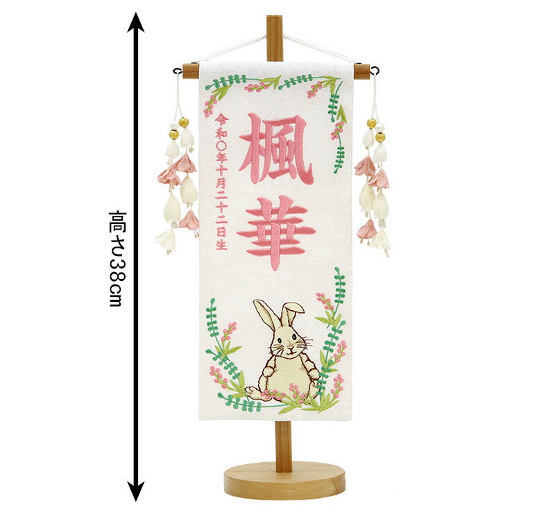【送料無料】最安値に挑戦!2026年度新作 雛人形 名前旗 雛人形 村上鯉幟 室内飾り 特織(小)若草にうさぎ 白 花舞い桃飾り スタンド付 薄桃糸刺繍 生年月日 名前入れ代込み 【2026年度新作】 mk-name-3-653-915
