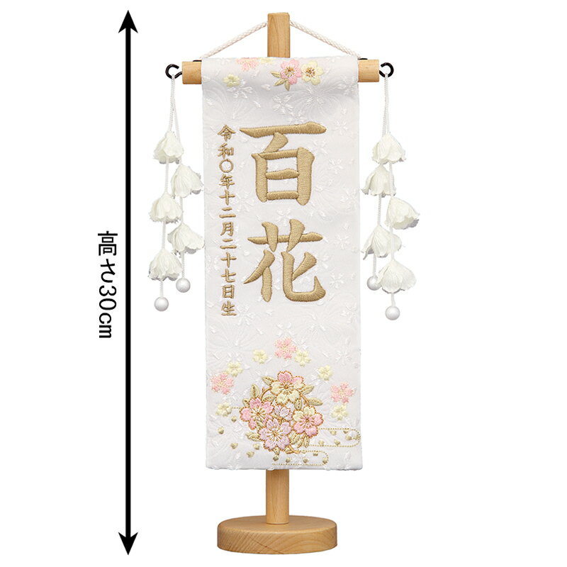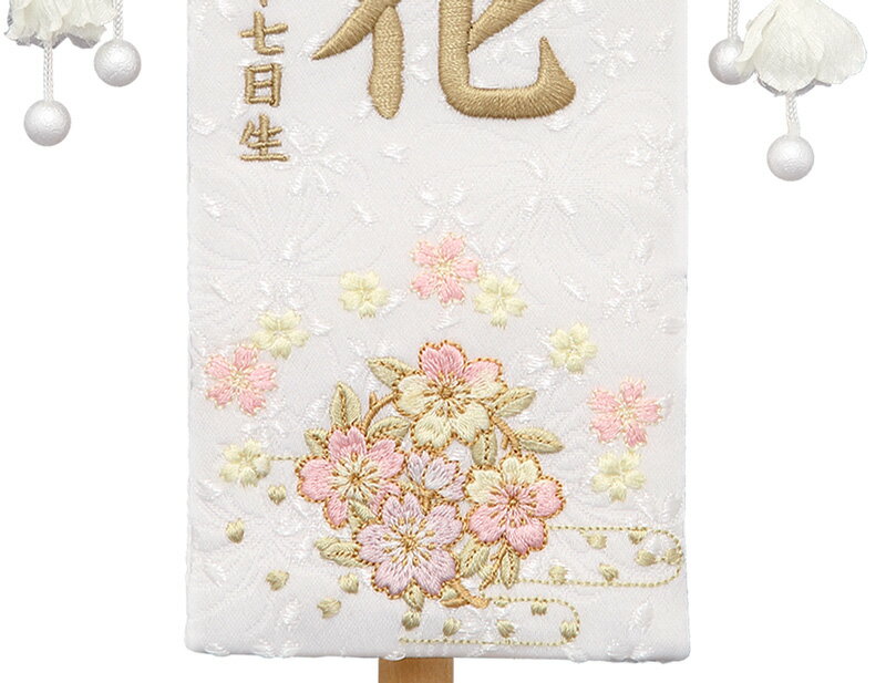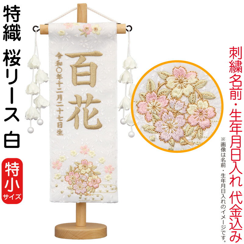【送料無料】最安値に挑戦!2026年度新作 雛人形 名前旗 雛人形 村上鯉幟 室内飾り 特織(特小)桜リース 白 花ひらく白飾り スタンド付 薄茶糸刺繍 生年月日 名前入れ代込み 【2026年度新作】 mk-name-3-658-187